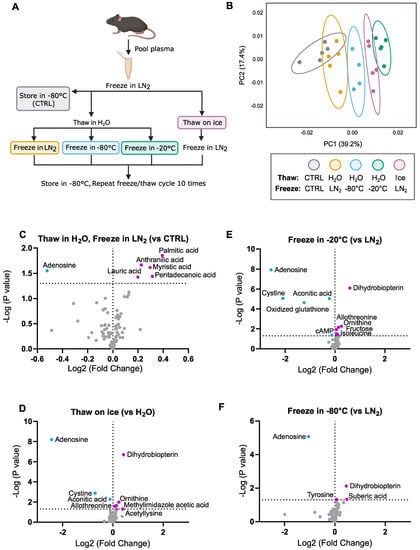 - Chen, D.; Han, W.; Huan, T.; Li, L.; Li, L. Effects of Freeze-Thaw Cycles of Blood Samples on High-Coverage Quantitative Metabolomics. Anal. Chem. 2020, 92, 9265–9272. [Google Scholar] [CrossRef]
