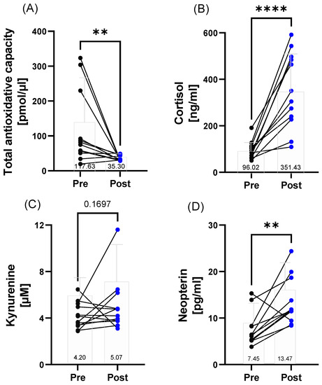 - De Lucas, R.D.; Caputo, F.; Mendes de Souza, K.; Sigwalt, A.R.; Ghisoni, K.; Lock Silveira, P.C.; Remor, A.P.; Da Luz Scheffer, D.; Guglielmo, L.G.A.; Latini, A. Increased platelet oxidative metabolism, blood oxidative stress and neopterin levels after ultra-endurance exercise. J. Sports Sci. 2014, 32, 22–30. [Google Scholar] [CrossRef] [PubMed]