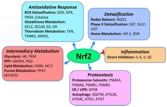 - Hayes, J.D.; Dinkova-Kostova, A.T. The Nrf2 regulatory network provides an interface between redox and intermediary metabolism. Trends Biochem. Sci. 2014, 39, 199–218. [Google Scholar] [CrossRef]