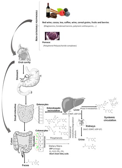 - Marín, L.; Miguélez, E.M.; Villar, C.J.; Lombó, F. Bioavailability of dietary polyphenols and gut microbiota metabolism: Antimicrobial properties. BioMed Res. Int. 2015, 2015, 905215. [Google Scholar] [CrossRef] [Green Version]