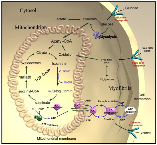Creatine kinase (CK) energy shuttle. ADP—Adenosine diphosphate; ATP—adenosine triphosphate.