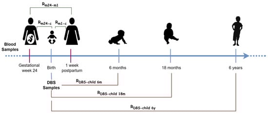 - Longitudinal correlation across individuals and time, relating mothers 24 weeks of pregnancy and children DBS ().