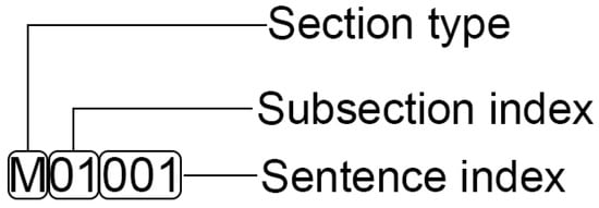 An example of sentence ID. The ID refers to the second sentence in the second subsection of the method section. Indexes start with 0.