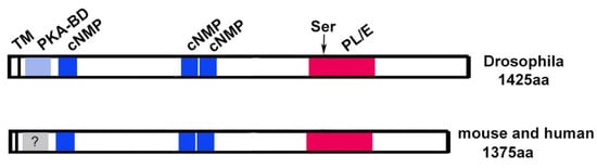 - Cassar, M.; Sunderhaus, E.; Wentzell, J.S.; Kuntz, S.; Strauss, R.; Kretzschmar, D. The PKA-C3 catalytic subunit is required in two pairs of interneurons for successful mating of Drosophila. Sci. Rep. 2018, 8, 2458. [Google Scholar] [CrossRef] [PubMed]