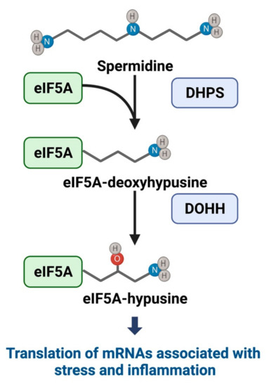- Park, M.H.; Wolff, E.C. Hypusine, a Polyamine-Derived Amino Acid Critical for Eukaryotic Translation. J. Biol. Chem. 2018, 293, 18710–18718. [Google Scholar] [CrossRef] [PubMed]