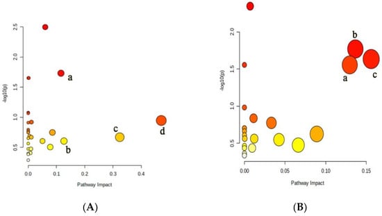 2.6. Metabolic Pathway Analysis of Differential Metabolites