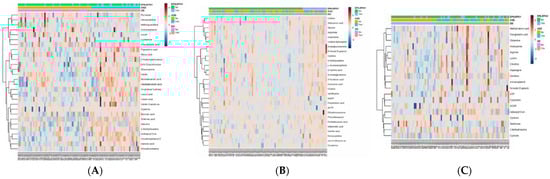 Heatmaps for Metabolites Found to Be Significantly (p ≤ 0.05) Related to Specific Clinical Groups. Each map is sorted by clinical group with color key for group membership on top of heatmap. Heatmap color represents (A) ASD (28 significant features); (B) epilepsy (28 significant features); (C) DD (19 significant features).