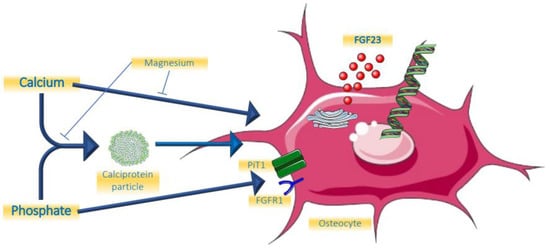 - David, V.; Dai, B.; Martin, A.; Huang, J.; Han, X.; Quarles, L.D. Calcium regulates FGF-23 expression in bone. Endocrinology 2013, 154, 4469–4482. [Google Scholar] [CrossRef]