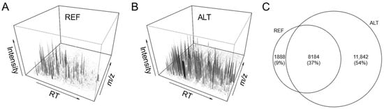 - Smith, C.A.; Want, E.J.; O’Maille, G.; Abagyan, R.; Siuzdak, G. XCMS: Processing Mass Spectrometry Data for Metabolite Profiling Using Nonlinear Peak Alignment, Matching, and Identification. Anal. Chem. 2006, 78, 779–787. [Google Scholar] [CrossRef] [PubMed]
