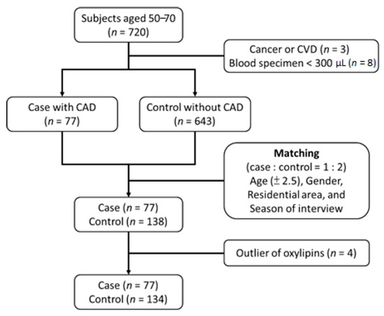 Chiang, K.-M.; Chen, J.-F.; Yang, C.-A.; Xiu, L.; Yang, H.-C.; Shyur, L.-F.; Pan, W.-H. Identification of Serum Oxylipins Associated with the Development of Coronary Artery Disease: A Nested Case-Control Study. Metabolites 2022, 12, 495. https://doi.org/10.3390/metabo12060495
