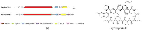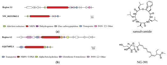 - Blin, K.; Shaw, S.; Kloosterman, A.M.; Charlop-Powers, Z.; van Wezel, G.P.; Medema, M.H.; Weber, T. AntiSMASH 6.0: Improving cluster detection and comparison capabilities. Nucleic Acids Res. 2021, 49, W29–W35. [Google Scholar] [CrossRef]