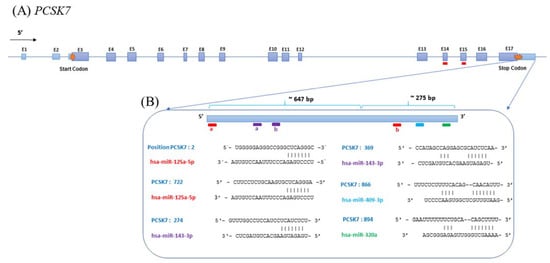 4.1. Computational Prediction of miRNAs That Target the PCSK7 Gene