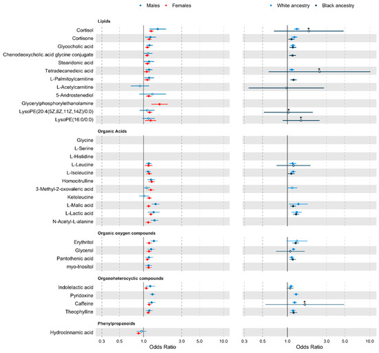 - Yu, B.; Zanetti, K.A.; Temprosa, M.; Albanes, D.; Appel, N.; Barrera, C.B.; Ben-Shlomo, Y.; Boerwinkle, E.; Casas, J.P.; Clish, C.; et al. The Consortium of Metabolomics Studies (COMETS): Metabolomics in 47 Prospective Cohort Studies. Am. J. Epidemiol. 2019, 188, 991–1012. [Google Scholar] [CrossRef] [Green Version]
