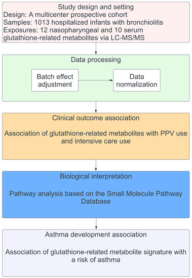 49. Fujiogi, M.; Camargo, C.A.; Raita, Y.; Zhu, Z.; Celedón, J.C.; Mansbach, J.M.; Spergel, J.M.; Hasegawa, K. Integrated associations of nasopharyngeal and serum metabolome with bronchiolitis severity and asthma: A multicenter prospective cohort study. Pediatr. Allergy Immunol. 2021, 32, 905–916. [Google Scholar] [CrossRef]