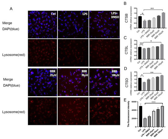 3.5. Berberine Promotes the Maturation and Expression of Lysosomes