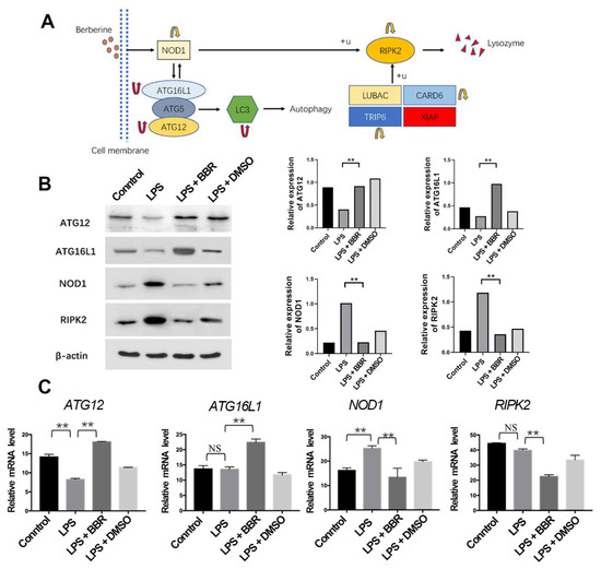 3.6. Berberine Regulates the ATG16L1/NOD1/RIPK2 Signaling Pathway