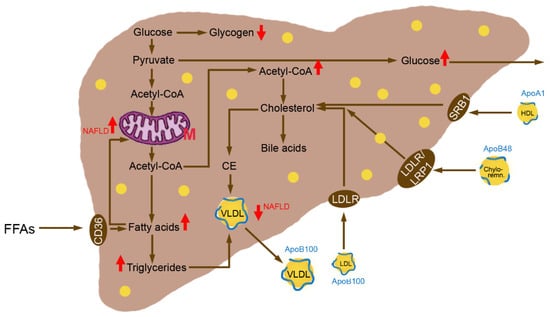 The liver plays a central role in glucose, lipid and cholesterol homeostasis and NAFLD is associated with dysregulation of several metabolic processes (Figure 1). To understand the development of NAFLD it is essential to consider the most important pathways in the regulation of lipid and cholesterol metabolism.