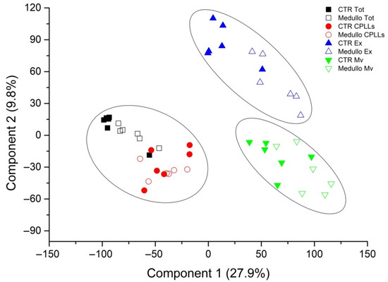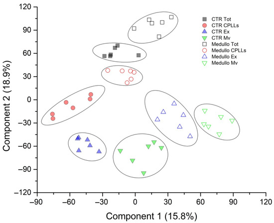 - Epple, L.M.; Griffiths, S.G.; Dechkovskaia, A.M.; Dusto, N.L.; White, J.; Ouellette, R.J.; Anchordoquy, T.J.; Bemis, L.T.; Graner, M.W. Medulloblastoma exosome proteomics yield functional roles for extracellular vesicles. PLoS ONE 2012, 7, e42064. [Google Scholar] [CrossRef] [Green Version]