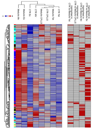 - Albert, T.K.; Interlandi, M.; Sill, M.; Graf, M.; Moreno, N.; Menck, K.; Rohlmann, A.; Melcher, V.; Korbanka, S.; Meyer Zu Horste, G.; et al. An extracellular vesicle-related gene expression signature identifies high-risk patients in medulloblastoma. Neuro-Oncol. 2015, 23, 586–598. [Google Scholar] [CrossRef]