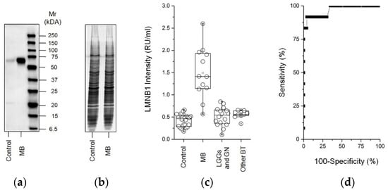 - Sun, S.; Xu, M.Z.; Poon, R.T.; Day, P.J.; Luk, J.M. Circulating Lamin B1 (LMNB1) biomarker detects early stages of liver cancer in patients. J. Proteome Res. 2010, 9, 70–78. [Google Scholar] [CrossRef] [PubMed]