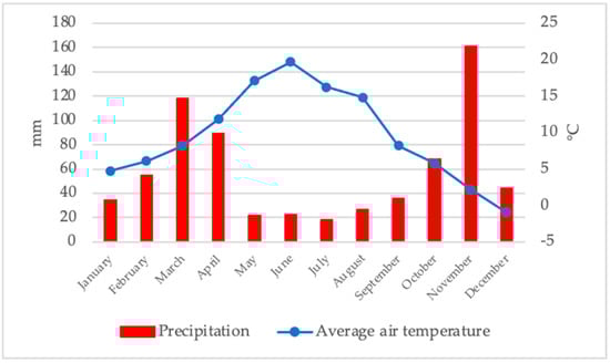 Climatic conditions (total rainfall and average air temperature) during 2017.