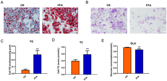 3.1. FFA Induced Lipid Accumulation and Reduced Glycogen Synthesis