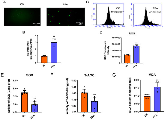 3.2. FFA Induces Excessive ROS Production and Oxidative Stress