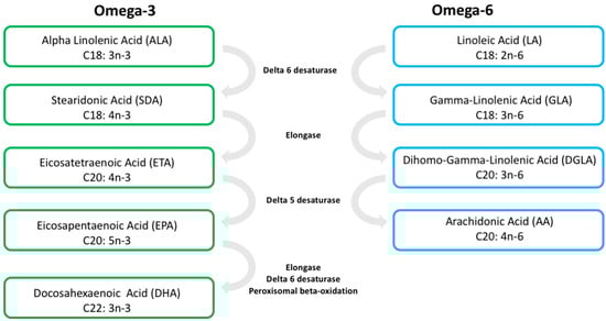 - Mariamenatu, A.H.; Abdu, E.M. Overconsumption of Omega-6 Polyunsaturated Fatty Acids (PUFAs) versus Deficiency of Omega-3 PUFAs in Modern-Day Diets: The Disturbing Factor for Their “Balanced Antagonistic Metabolic Functions” in the Human Body. J. Lipids 2021, 2021, 8848161. [Google Scholar] [CrossRef]