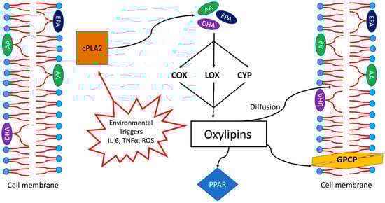 - Gabbs, M.; Leng, S.; Devassy, J.G.; Monirujjaman, M.; Aukema, H.M. Advances in Our Understanding of Oxylipins Derived from Dietary PUFAs. Adv. Nutr. 2015, 6, 513–540. [Google Scholar] [CrossRef] [PubMed]