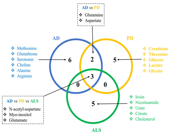 2. Common and Specific Metabolite Alterations among AD, ALS, and PD