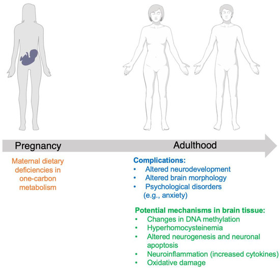 - Jadavji, N.M.; Deng, L.; Malysheva, O.; Caudill, M.A.; Rozen, R. MTHFR Deficiency or Reduced Intake of Folate or Choline in Pregnant Mice Results in Impaired Short-Term Memory and Increased Apoptosis in the Hippocampus of Wild-Type Offspring. Neuroscience 2015, 300, 1–9. [Google Scholar] [CrossRef]