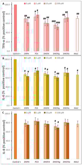 3.3. Activity of Microbial Phenolic Acids and Their Conjugates in RAW 264.7 Macrophage Cells