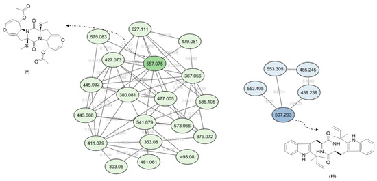 Diketopiperazine’s molecular family obtained via GNPS for fungal extracts prepared from P. setosum.