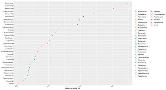 The top 30 most important microbial genera determination of microbiota structure with A. muciniphila administration were obtained by using random forest analysis.