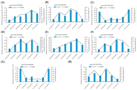 (A–H): Verifying the transcription level of selected DEGs by RT-qPCR.