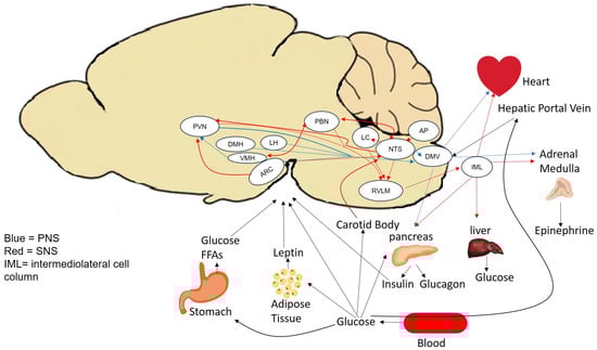 - Donovan, C.M.; Watts, A.G. Peripheral and Central Glucose Sensing In Hypoglycemic Detection. Physiology 2014, 29, 314–324. [Google Scholar] [CrossRef]