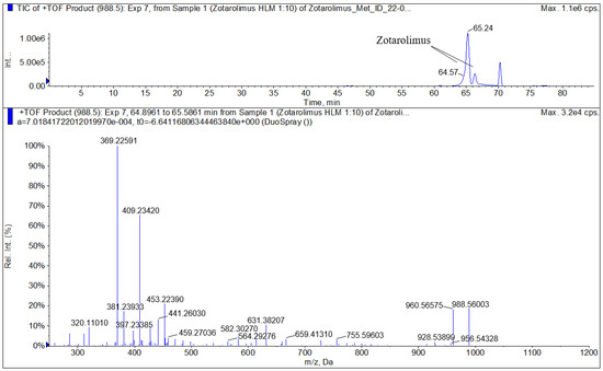 Zotarolimus and its metabolites were analyzed using a 5600+ high-resolution triple TOF mass spectrometer (Sciex, ON, Canada) operated in the positive electrospray ionization (ESI) mode. The instrument was controlled, and data were acquired and analyzed using Sciex Analyst Software (version TF1.7.1).