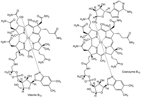 - Wang, M.; Asam, S.; Chen, J.; Ehrmann, M.; Rychlik, M. Production of Four 15N-Labelled Cobalamins via Biosynthesis Using Propionibacterium freudenreichii. Front. Microbiol. 2021, 12, 713321. [Google Scholar] [CrossRef] [PubMed]