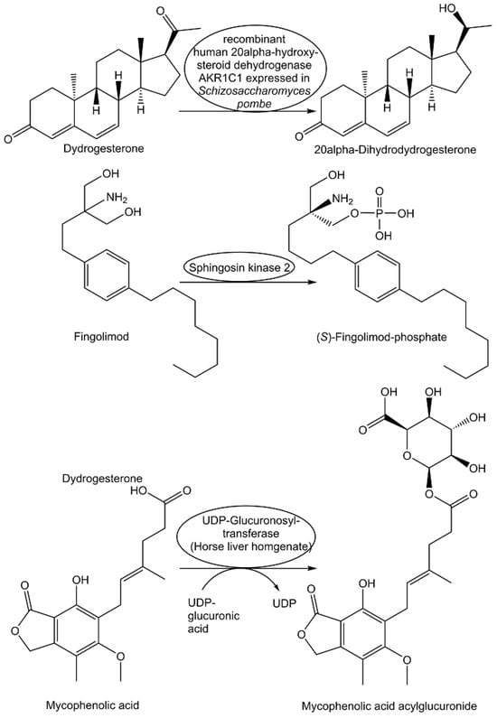 - Naumann, J.M.; Zöllner, A.; Drăgan, C.A.; Messinger, J.; Adam, J.; Bureik, M. Biotechnological Production of 20-alpha-Dihydrodydrogesterone at Pilot Scale. Appl. Biochem. Biotechnol. 2011, 165, 190–203. [Google Scholar] [CrossRef] [PubMed]