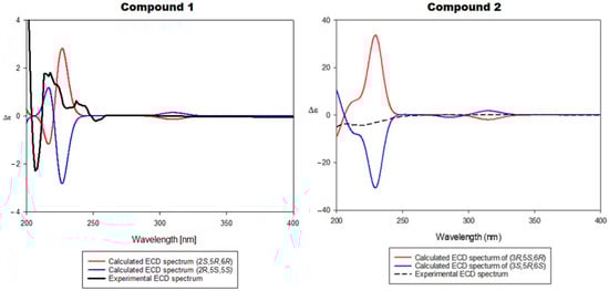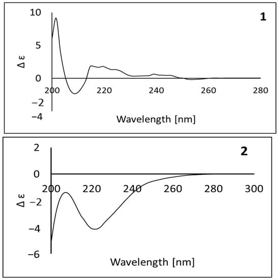 2.2.3. Assignment of the Absolute Stereochemical Configuration of Compounds 1 and 2 (ECD Spectra)