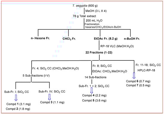 Extraction of T. aegyptia and isolation of compounds 1–7.