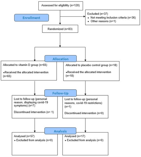 - Bislev, L.S.; Sundekilde, U.K.; Kilic, E.; Dalsgaard, T.K.; Rejnmark, L.; Bertram, H.C. Circulating Levels of Muscle-Related Metabolites Increase in Response to a Daily Moderately High Dose of a Vitamin D3 Supplement in Women with Vitamin D Insufficiency-Secondary Analysis of a Randomized Placebo-Controlled Trial. Nutrients 2020, 12, 1310. [Google Scholar] [CrossRef] [PubMed]