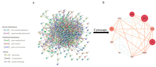 2.5. Protein-Protein Interaction (PPI) Network Construction and Analysis