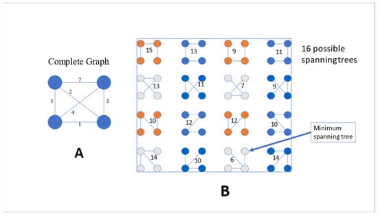 - Kruskal, J.B. On the Shortest Spanning Subtree of a Graph and the Traveling Salesman Problem. Proc. Am. Math. Soc. 1956, 7, 3. [Google Scholar] [CrossRef]