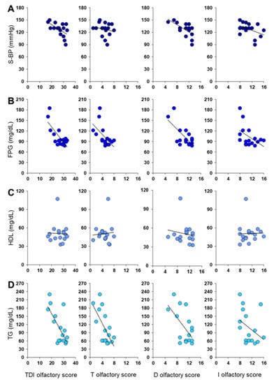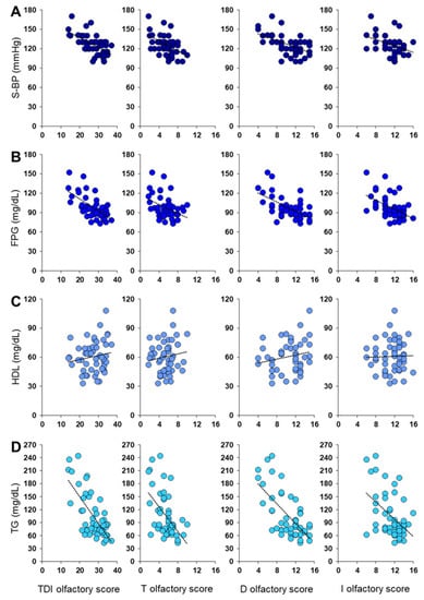 - Roh, D.; Lee, D.H.; Kim, S.W.; Kim, S.W.; Kim, B.G.; Kim, D.H.; Shin, J.H. The association between olfactory dysfunction and cardiovascular disease and its risk factors in middle-aged and older adults. Sci. Rep. 2021, 11, 1248. [Google Scholar] [CrossRef]