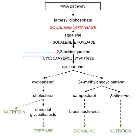 - De Vriese, K.; Pollier, J.; Goossens, A.; Beeckman, T.; Vanneste, S. Dissecting cholesterol and phytosterol biosynthesis via mutants and inhibitors. J. Exp. Bot. 2021, 72, 241–253. [Google Scholar] [CrossRef] [PubMed]