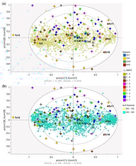3.2. Seasonality Assessment from MS-NMR Fused Data