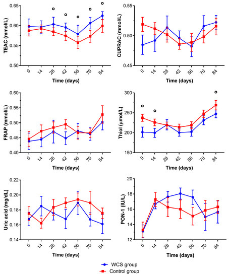 - Rubio, C.P.; Hernández-Ruiz, J.; Martinez-Subiela, S.; Tvarijonaviciute, A.; Ceron, J.J. Spectrophotometric assays for total antioxidant capacity (TAC) in dog serum: An update. BMC Vet. Res. 2016, 12, 166. [Google Scholar] [CrossRef]