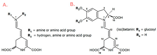 General structures: (A) betaxanthins, (B) betacyanins.