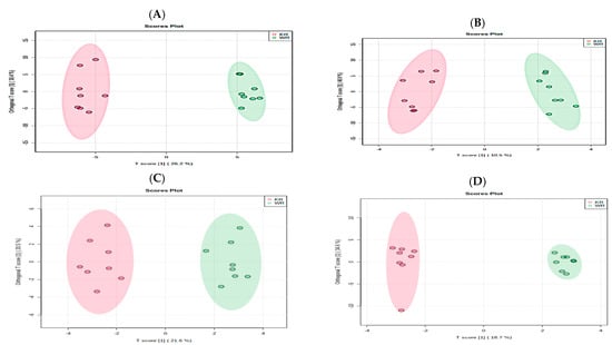 3.1. Differences in Global Metabolites, Lipids, and Biogenic Amines among the Green and Roasted Coffee Varieties of “Kona Typica” (Waialua) and “Yellow Catuai” (Kaua’i) Brews